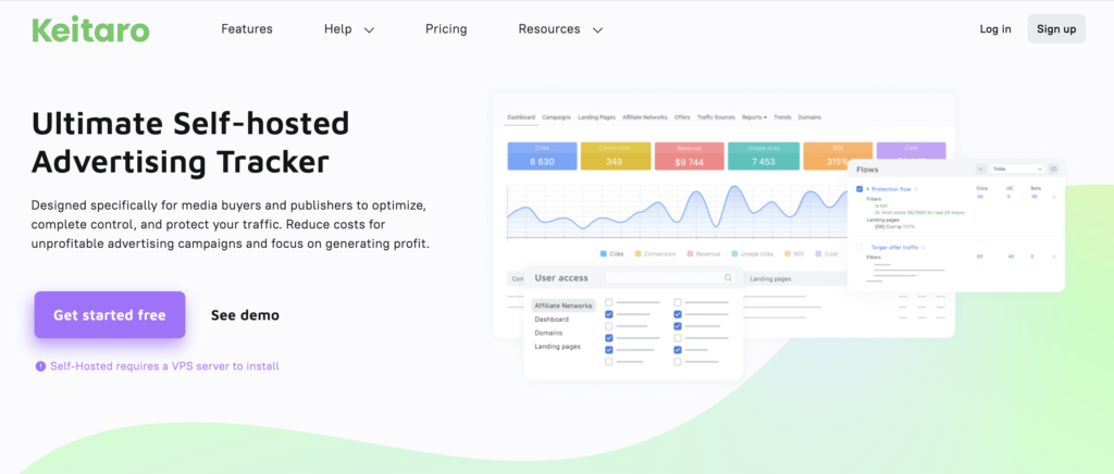It has different redirect options (by target, HTTP, JS, iframe), thread rotation, more than 30 built-in filters, its landing page editor, and its API. Keitaro automatically generates timely reports and provides detailed statistics and subsequent data export.